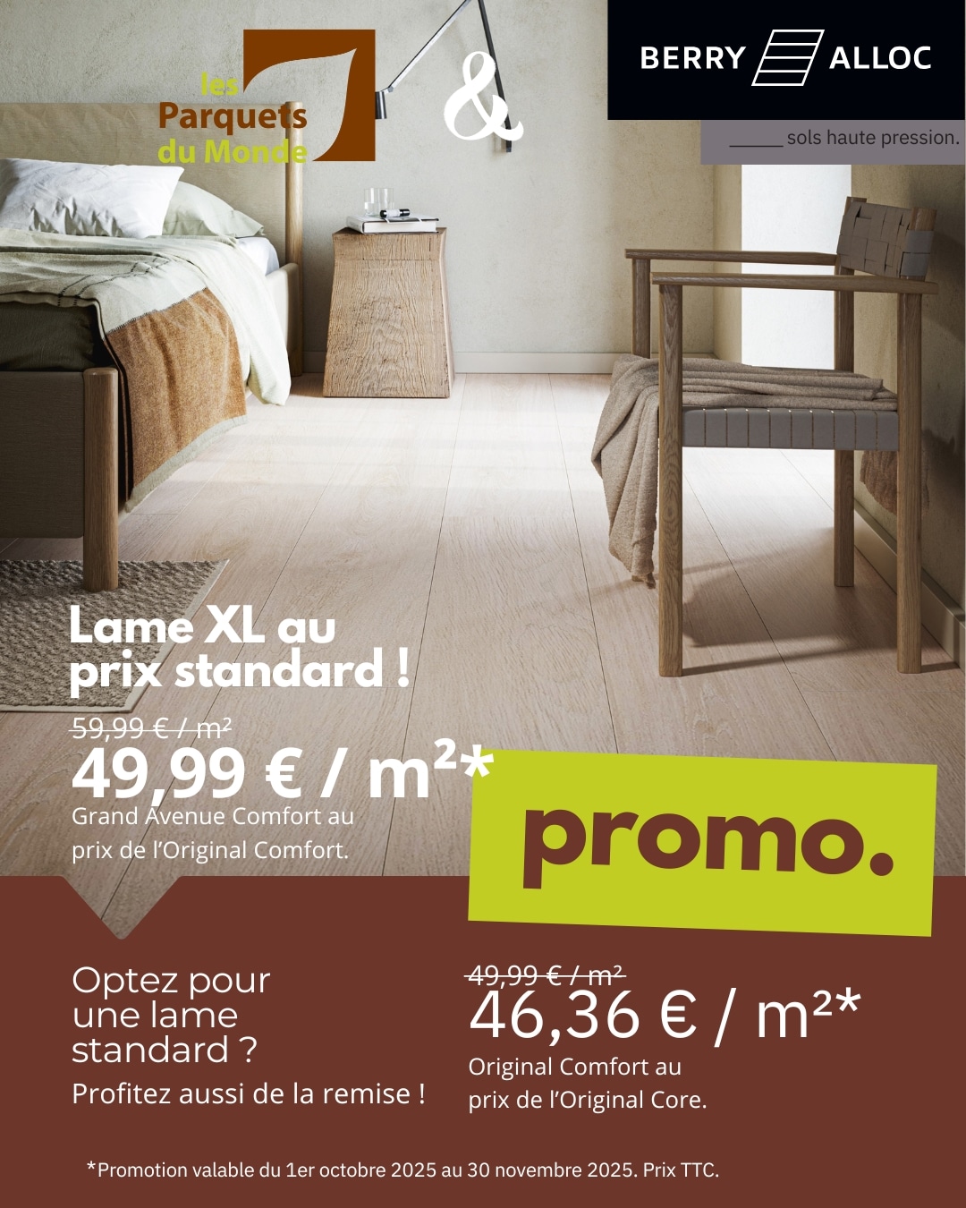 • Original Comfort – lames standard à 46,36 €/m² (au lieu de 49,99 €/m²)